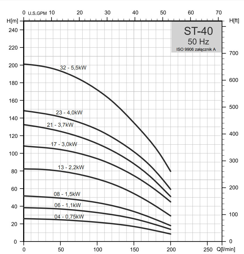 | Standard przyłącza silnik - pompa: | 4" NEMA |
