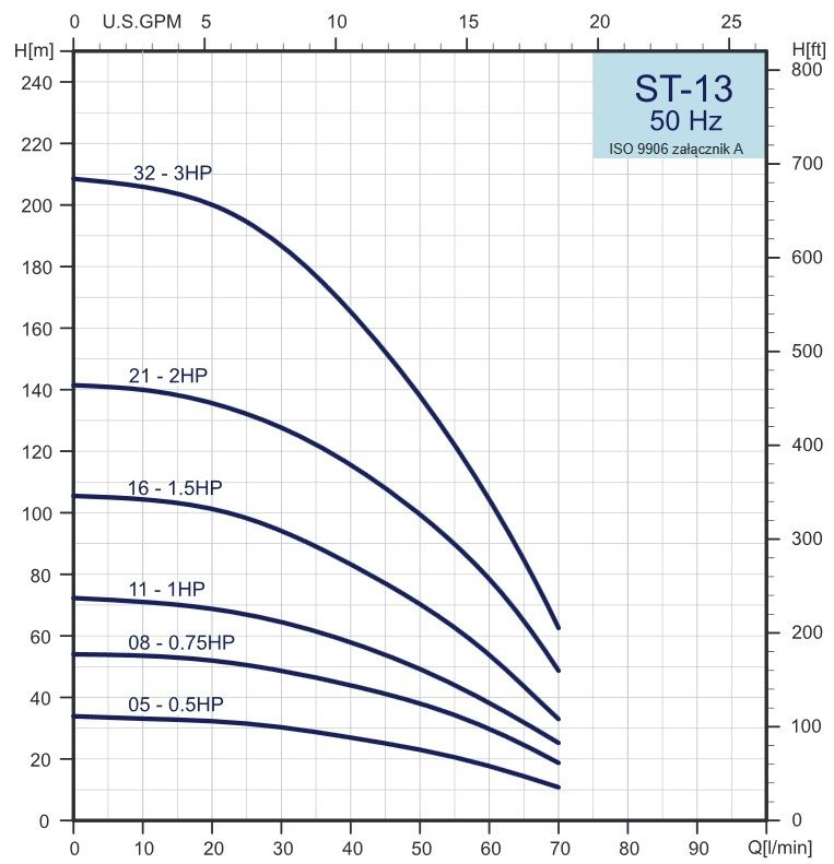 Ilość stopni (wirników):![]() Ilość stopni (wirników) pompy wpływa na jej parametry podnoszenia (ciśnienia). Im więcej wirników, tym pompa ma większą wysokość podnoszenia co jest jednoznaczne z większym ciśnieniem. | 16 |