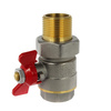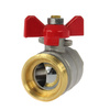Zawór kulowy mosiężny z motylkiem o gwincie wewnętrznym oraz zewnętrznym o wymiarach 3/4" [cal] z półśrubunkiem.