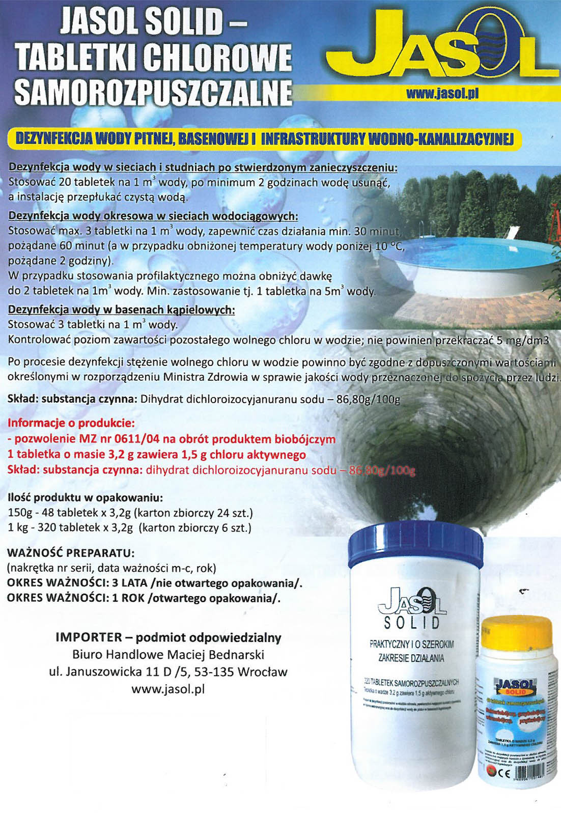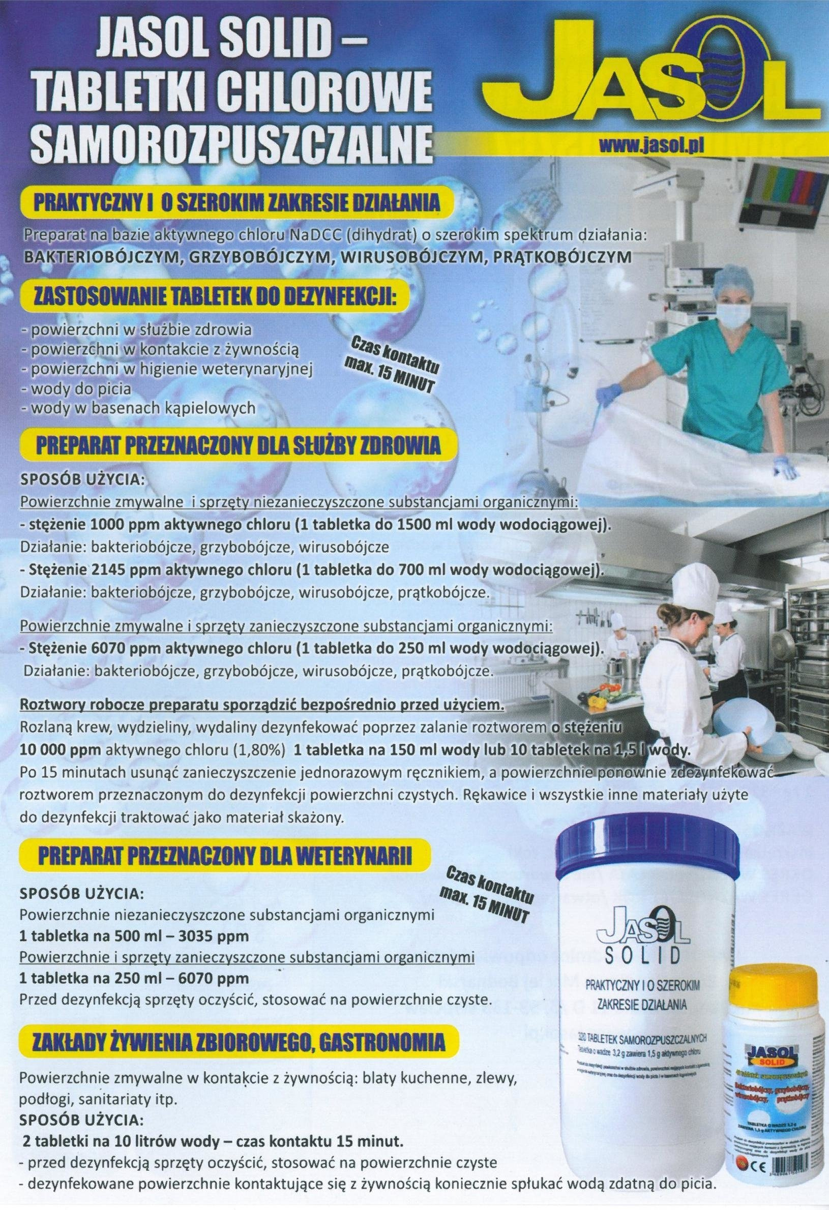 Tabletki chlorowe JASOL SOLID produkcji francuskiej są jedynymi tabletkami stosowanymi przez Wodociągi oraz ZGK i są zarazem pewne w użyciu, bowiem jakość wody w tych instytucjach monitorowana jest codziennie.