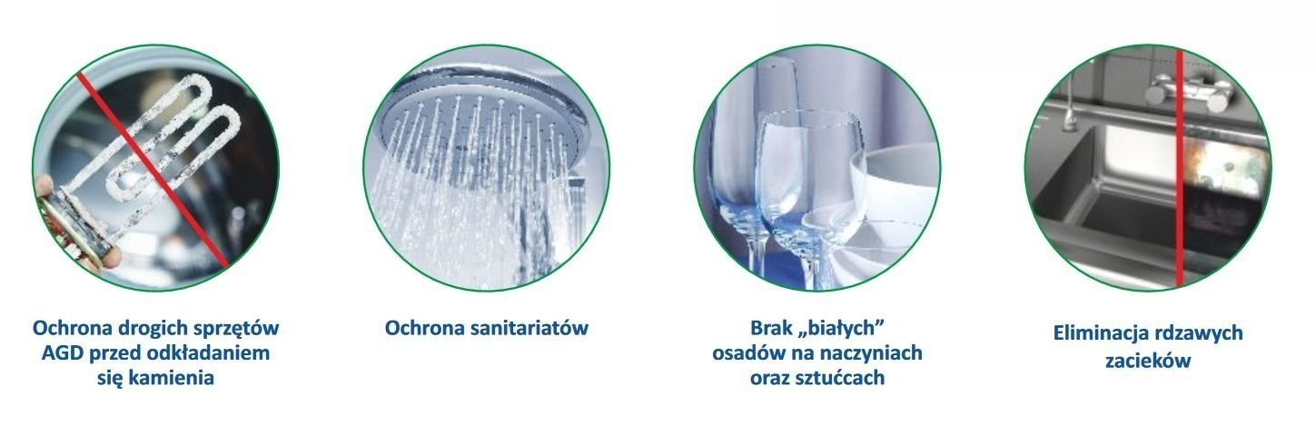 Polecamy zastosowanie jednego urządzenia Supreme Multi, które pozwala oszczędzić energię aż do 30%, skutecznie chroni drogie sprzęty AGD przed odkładaniem się kamienia, sanitariaty, eliminuje rdzawe zacieki oraz wpływa na brak „białych” osadów na naczyniach oraz sztućcach.