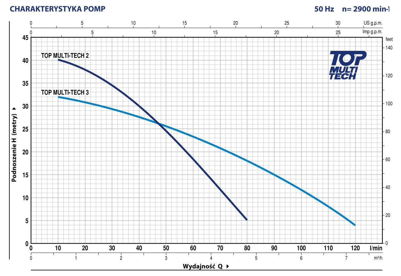 - TOP MULTI-TECH jest wyposażona w wewnętrzne urządzenie elektroniczne, które automatycznie uruchamia lub zatrzymuje pompę po otwarciu lub zamknięciu zaworu