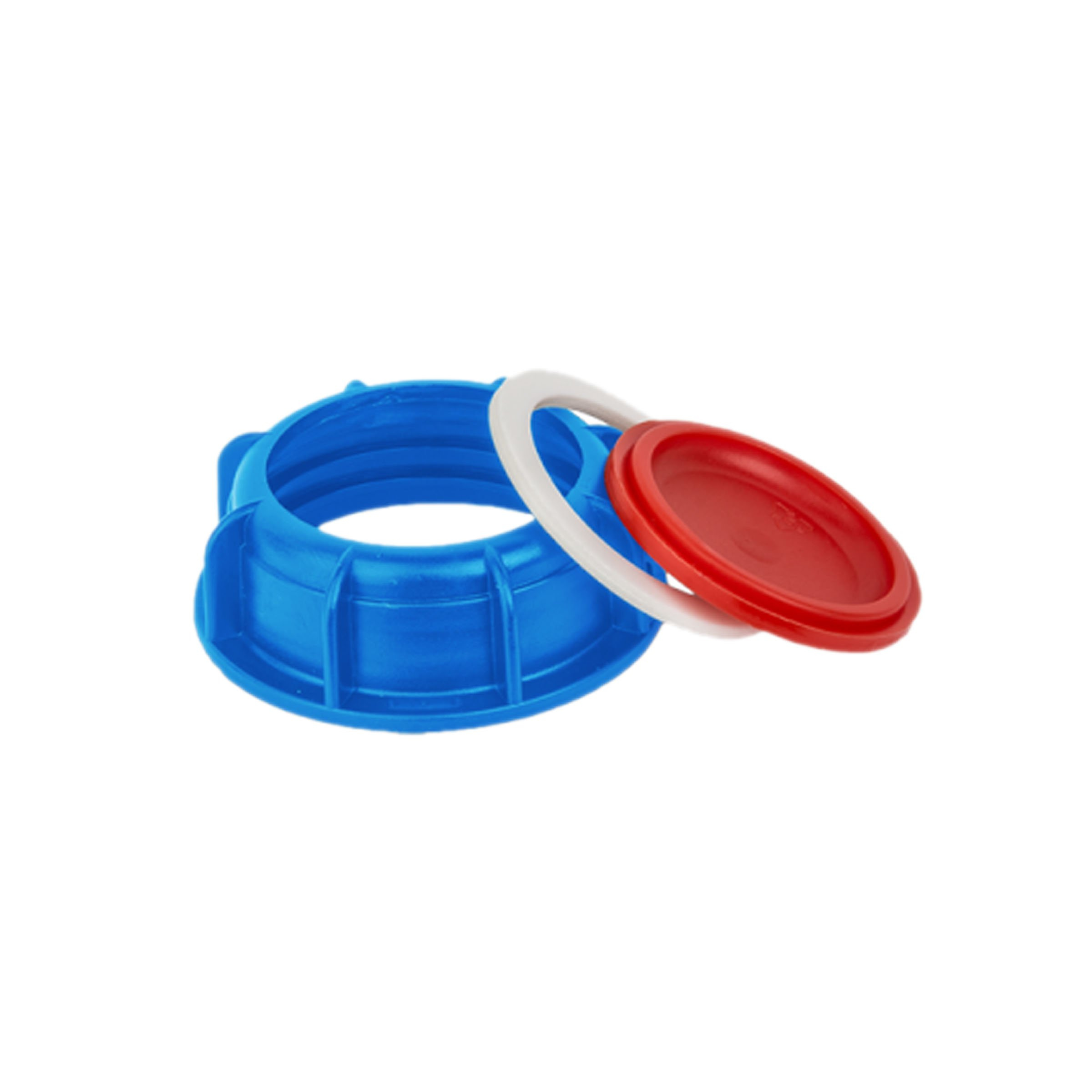 Plastikowa nakrętka na zbiornik IBC (Mauser) wraz uszczelką o gwincie wewnętrznym S60x6 z zaślepką.