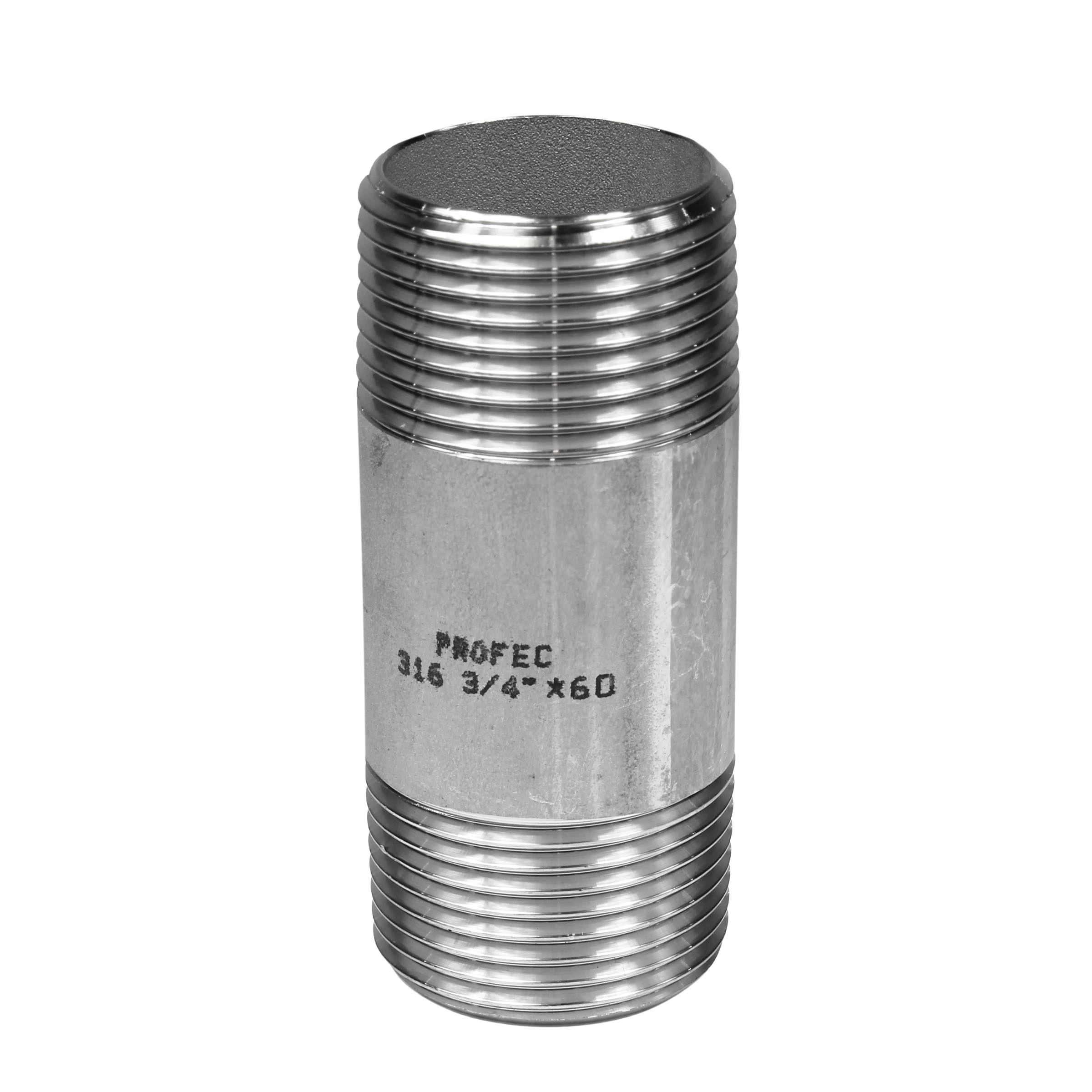 Wysokiej jakości rura z gwintem zewnętrznym po obu stronach o wymiarach 3/4". Wykonana z wysokiej jakości stali nierdzewnej, kwasoodpornej AISI 316.