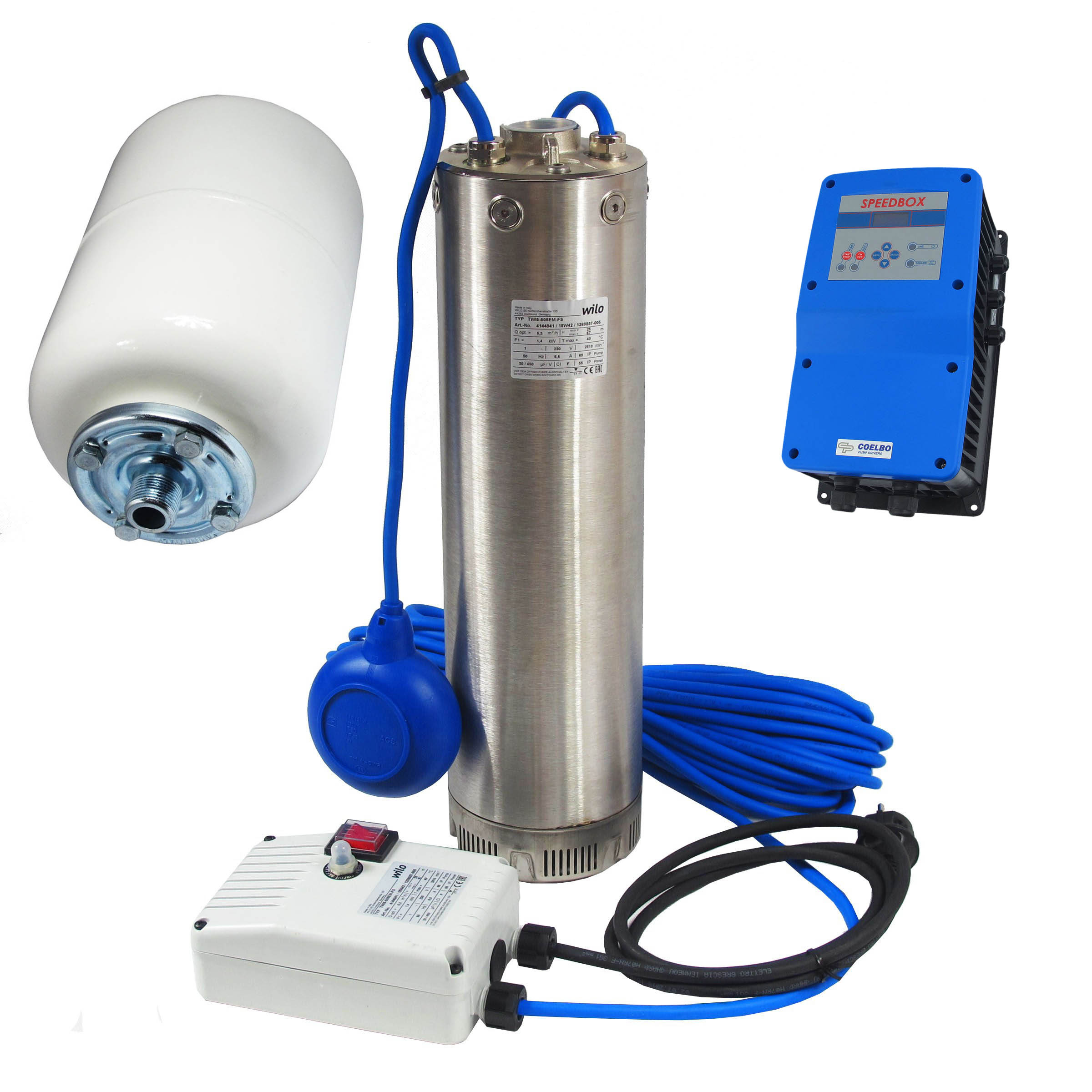 Zestaw pompy głębinowej, falownika oraz naczynia przeponowego.