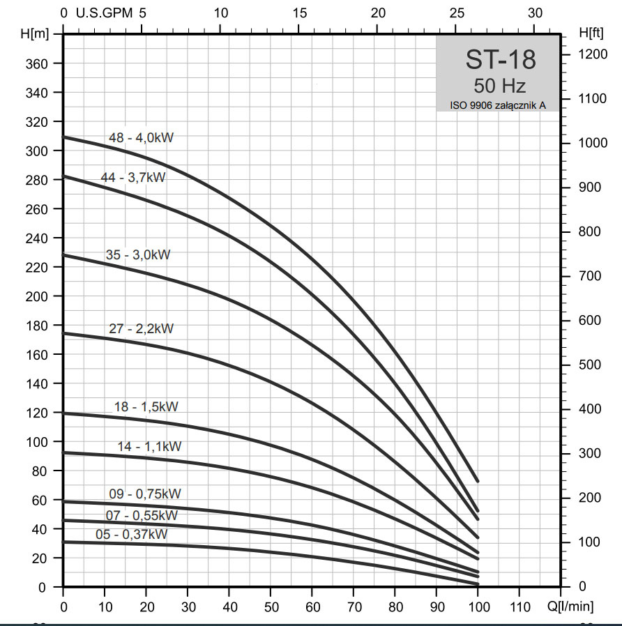 Ilość stopni (wirników):![]() Ilość stopni (wirników) pompy wpływa na jej parametry podnoszenia (ciśnienia). Im więcej wirników, tym pompa ma większą wysokość podnoszenia co jest jednoznaczne z większym ciśnieniem. | 27 |