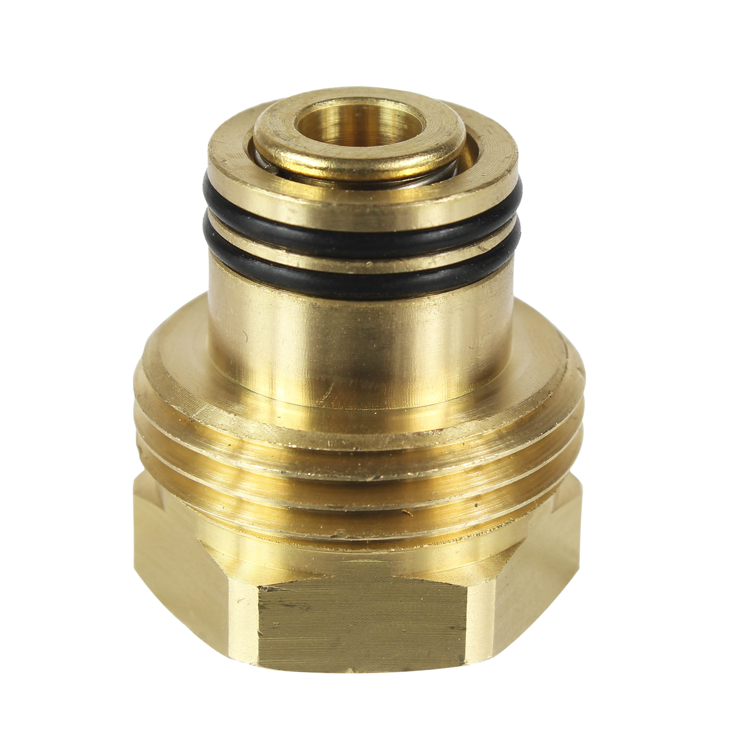 Wykonane z mosiądzu szybkozłącze do naczynia przeponowego o gwincie wewnętrznym (wejściu) 3/4" i gwincie zewnętrznym (wyjściu) 3/4".
