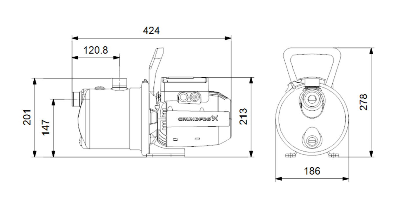 Kompaktowa budowa, ergonomiczna rączka do przenoszenia oraz estetyka wykonania stanowi o popularności pompy wśród innych agregatów podobnej klasy.