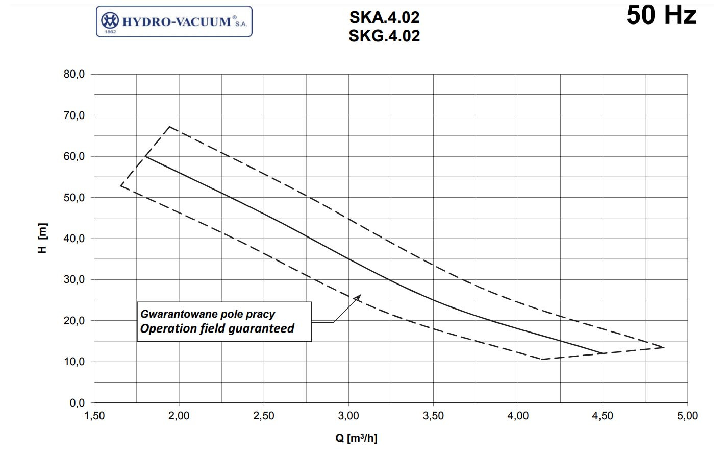 Samozasysająca pompa SKA.4.02.1.1010.1 producenta Hydro-Vacuum należy do typoszeregu pomp wirowych, krążeniowych, z bocznym kanałem pierścieniowym i wirnikiem otwartym, służących do pompowania cieczy w zakresie odporności korozyjnej materiałów użytych do ich budowy. Dozwolone jest pompowanie cieczy o temperaturze do 110oC, gęstości cieczy przetłaczanej do 1300 kg/m3, lepkości do 150 mm2/s zanieczyszczonych cząstkami stałymi nieścieralnymi o wielkości do 0,5 mm w ilościach śladowych. Pompy mogą pracować z silnikami o częstotliwości 50 - 60 Hz.