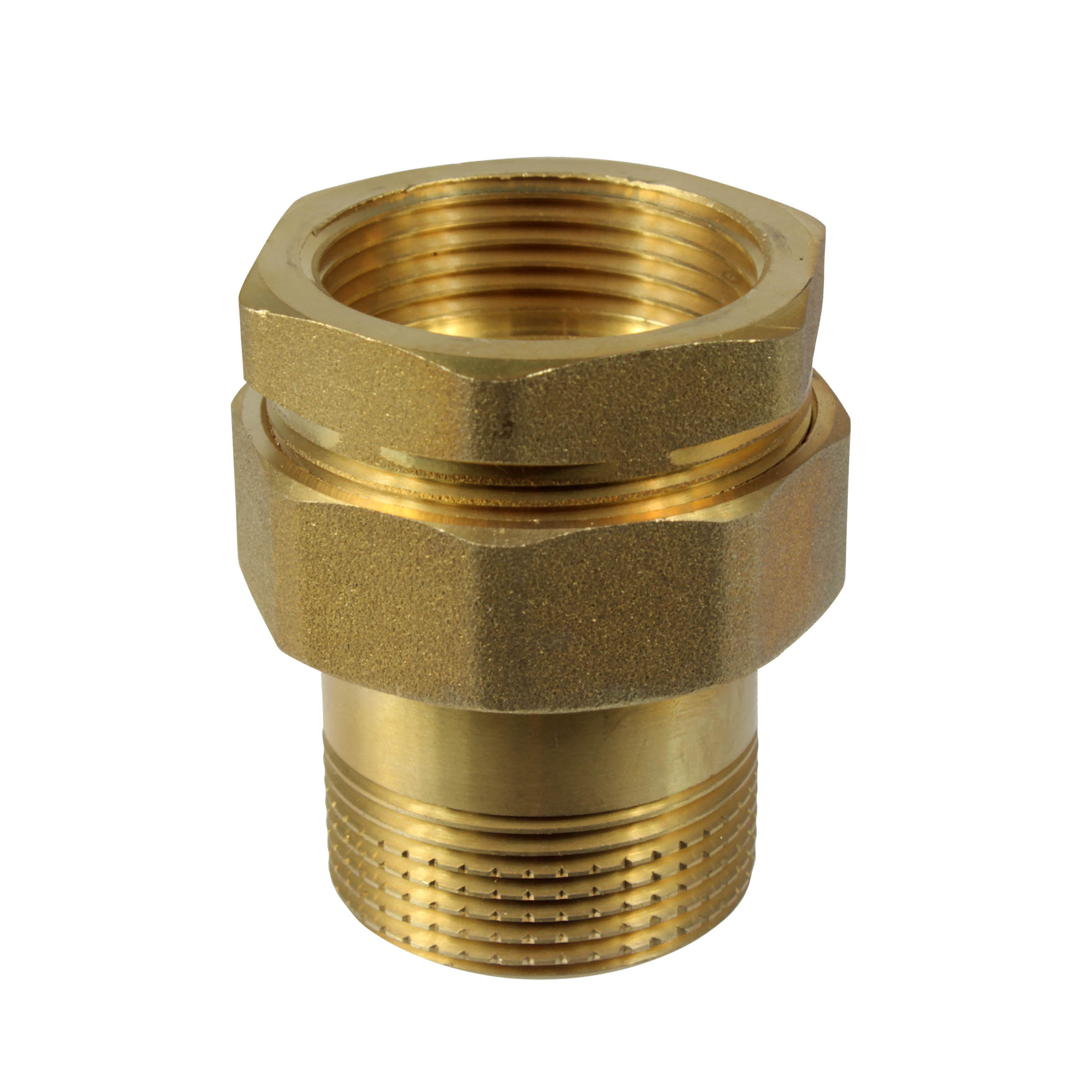 Wykonany z mosiądzu śrubunek o gwintach zewnętrznym oraz wewnętrznym o wymiarze 2".