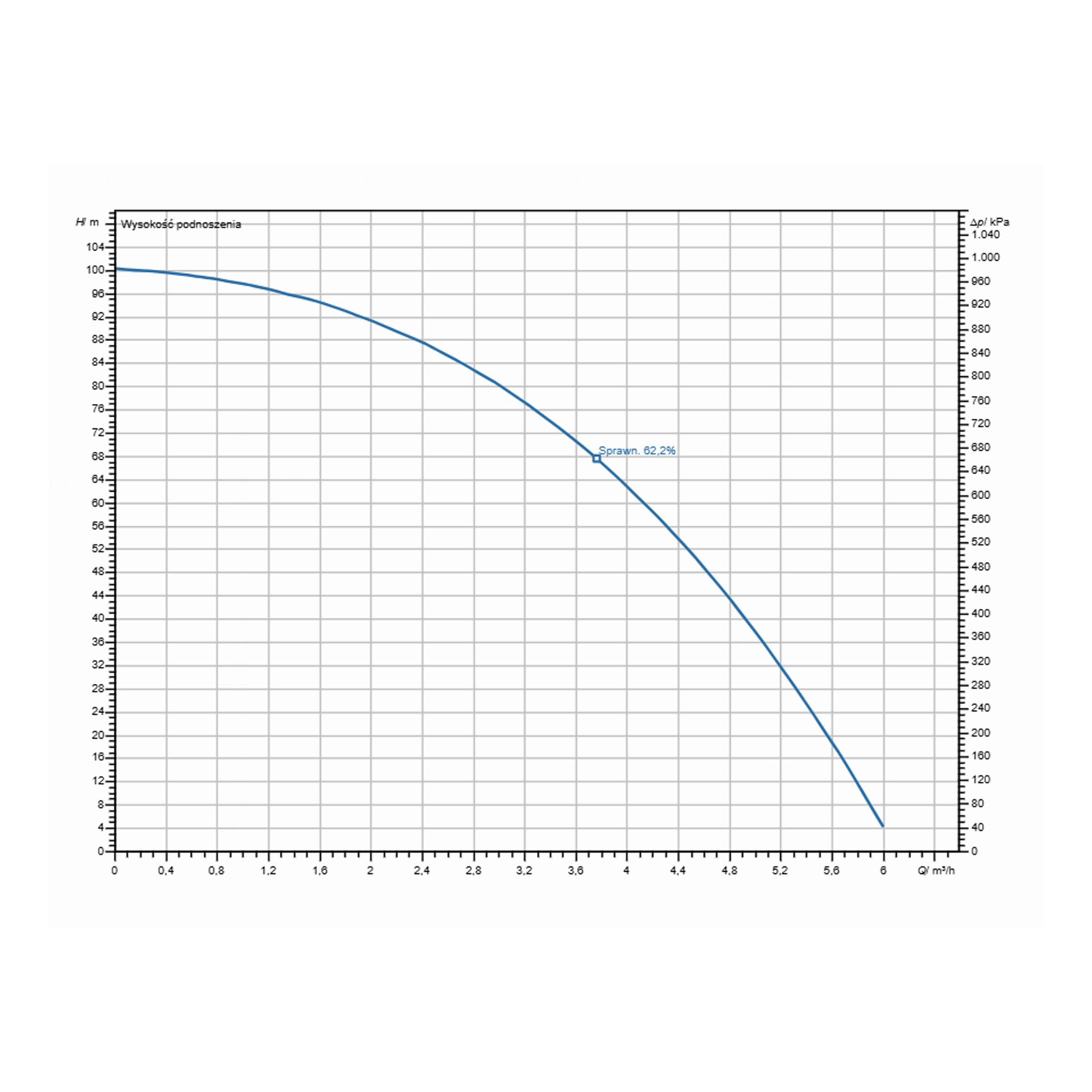 Wysokość podnoszenia max. [m]:![]() Wysokość podnoszenia H max. - najwyższa możliwa wysokość tłoczenia cieczy, przy najmniejszej możliwej wydajności Q min. Znając wysokość podnoszenia możemy w łatwy sposób określić maksymalne ciśnienie pompy. Wysokość podnoszenia 10m, to odpowiednik ok 1BAR ciśnienia. Gdy więc np. pompa ma max. 70m podnoszenia to w teorii powinna dać na wyjściu ok 7BAR. | 100 |