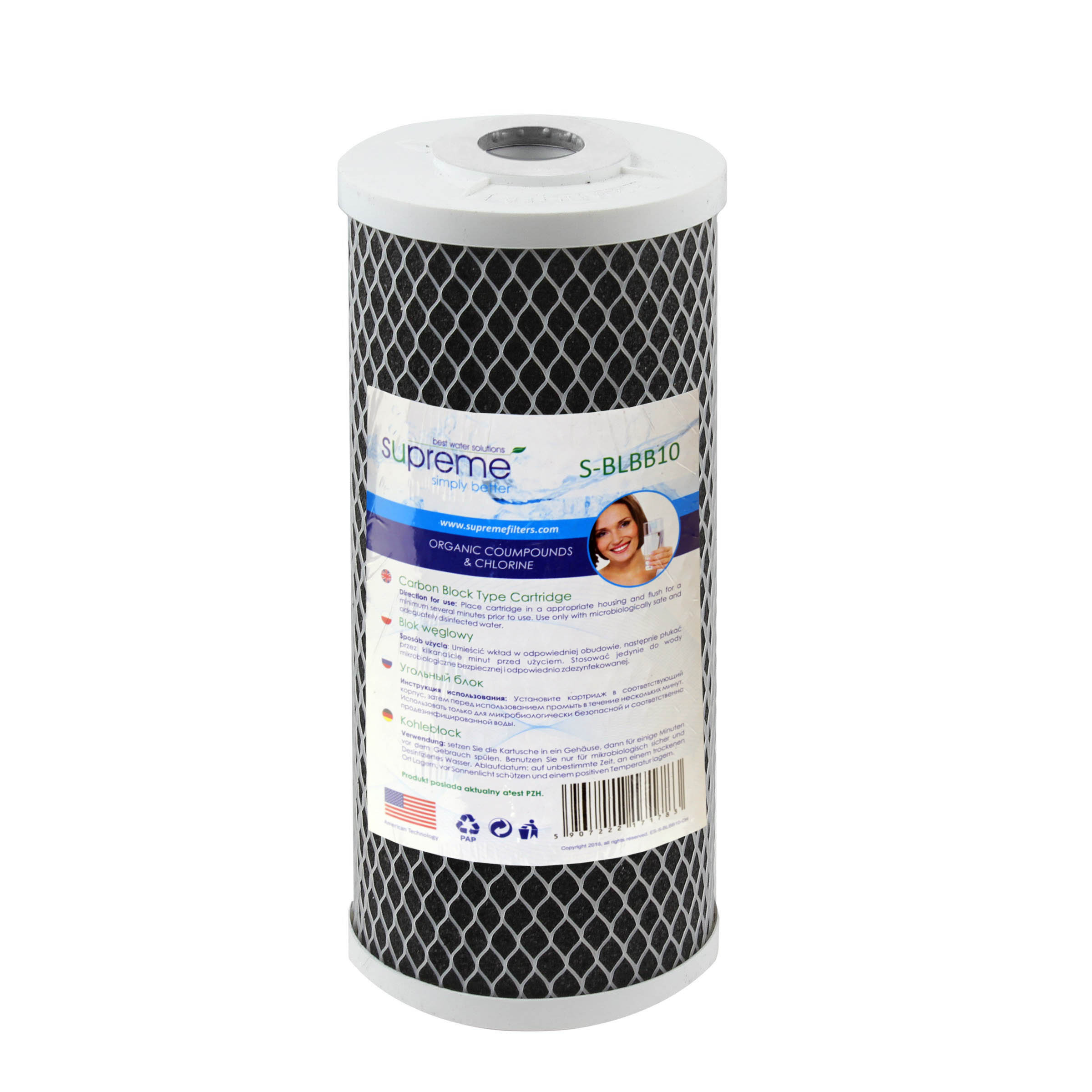 Profesjonalny wkład węglowy ze specjalnie spiekanego węgla aktywowanego z łupin orzechów kokosowych o wysokiej gęstości, posiadającego dużą zdolność absorpcji chloru i innych zanieczyszczeń organicznych zawartych w wodzie. Stosowany jest w obudowach standardu BIG BLUE 10 cali w celu ochrony całej instalacji wodnej.