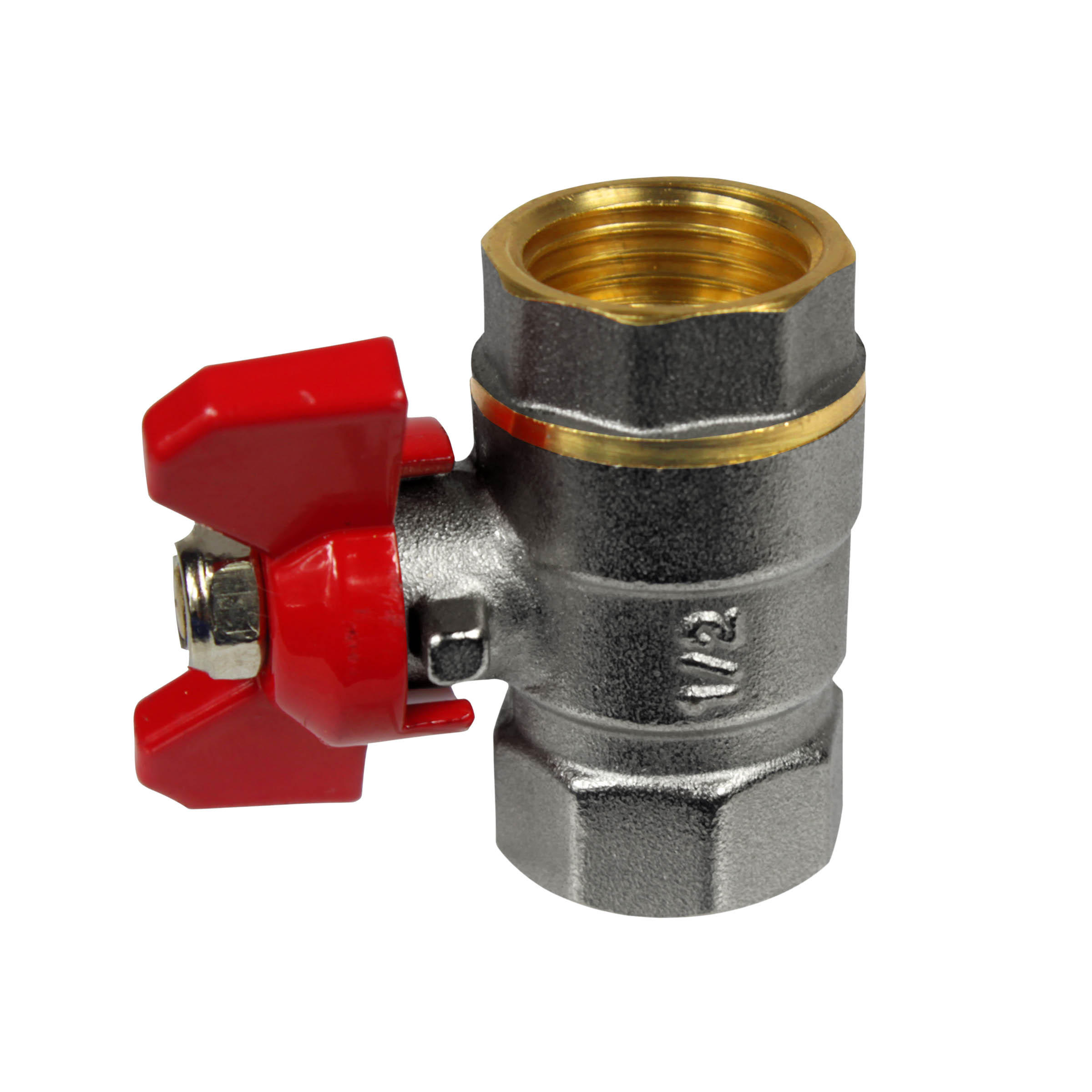 Zawór kulowy mosiężny z rączką o gwintach wewnętrznych o wymiarze 1/2".
