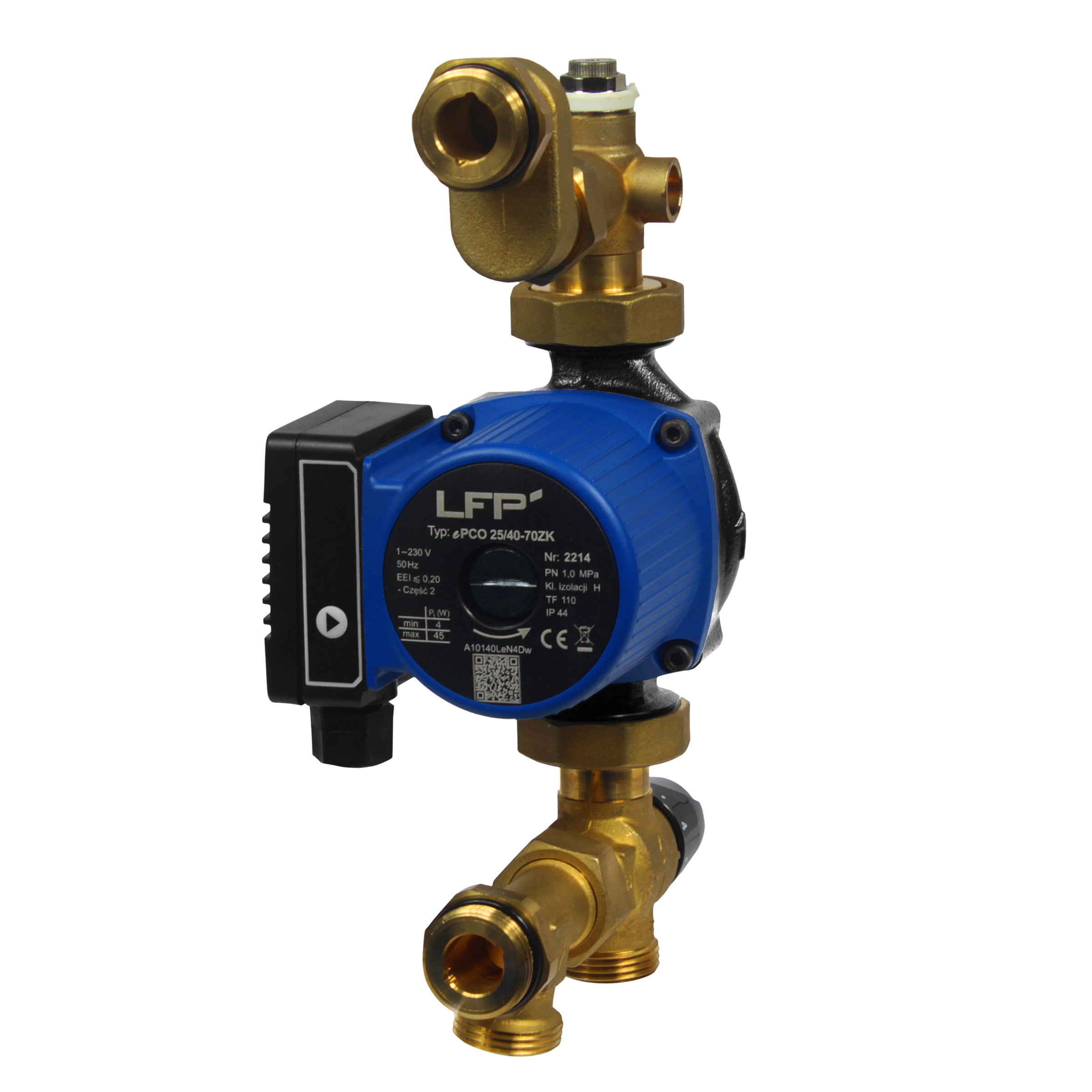 W skład zestawu wchodzi pompa obiegowa ePCO 25/40-70ZK sterowana elektronicznie przeznaczona do zapewniania obiegu wody w systemach grzewczych. Jej działanie pozwala na szybkie rozprowadzanie ciepła, zapewniając jednocześnie stałą temperaturę w ogrzewanych pomieszczeniach. Pompy te idealnie sprawdzają się w instalacjach ze zmiennym natężeniem przepływu, np. instalacje centralnego ogrzewania z grzejnikami regulowanymi za pomocą termostatu oraz w instalacjach z niskimi przepływami i znacznymi skokami temperatury tłoczonej cieczy (np. instalacje solarne).