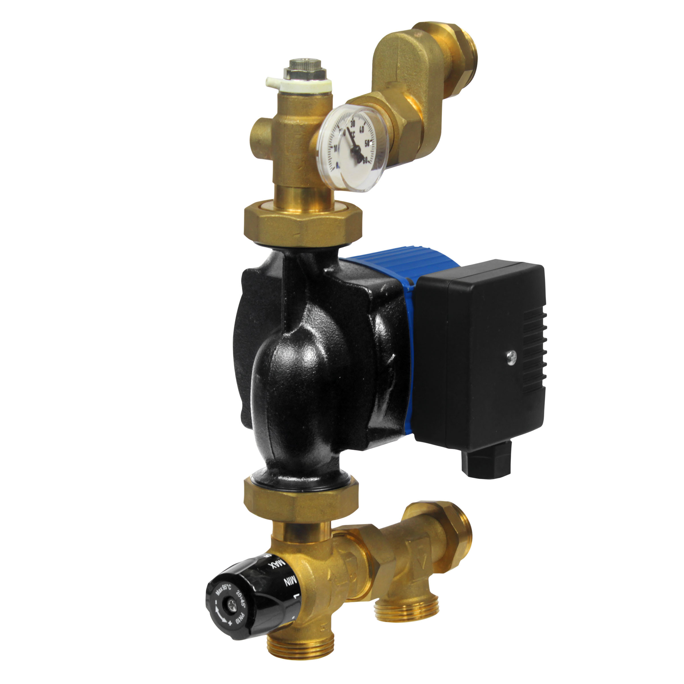 Moduł mieszająco-pompowy W-MOD z termostatycznym zaworem mieszającym, ograniczając temperaturę tłoczonego medium, idealnie sprawdza się w instalacjach ogrzewania podłogowego. Może być montowany bezpośrednio w skrzynkach rozdzielaczy obwodów grzewczych. Znajduje także zastosowanie w obiegach ciepłej wody użytkowej po zamontowaniu ich za zasobnikiem c.w.u