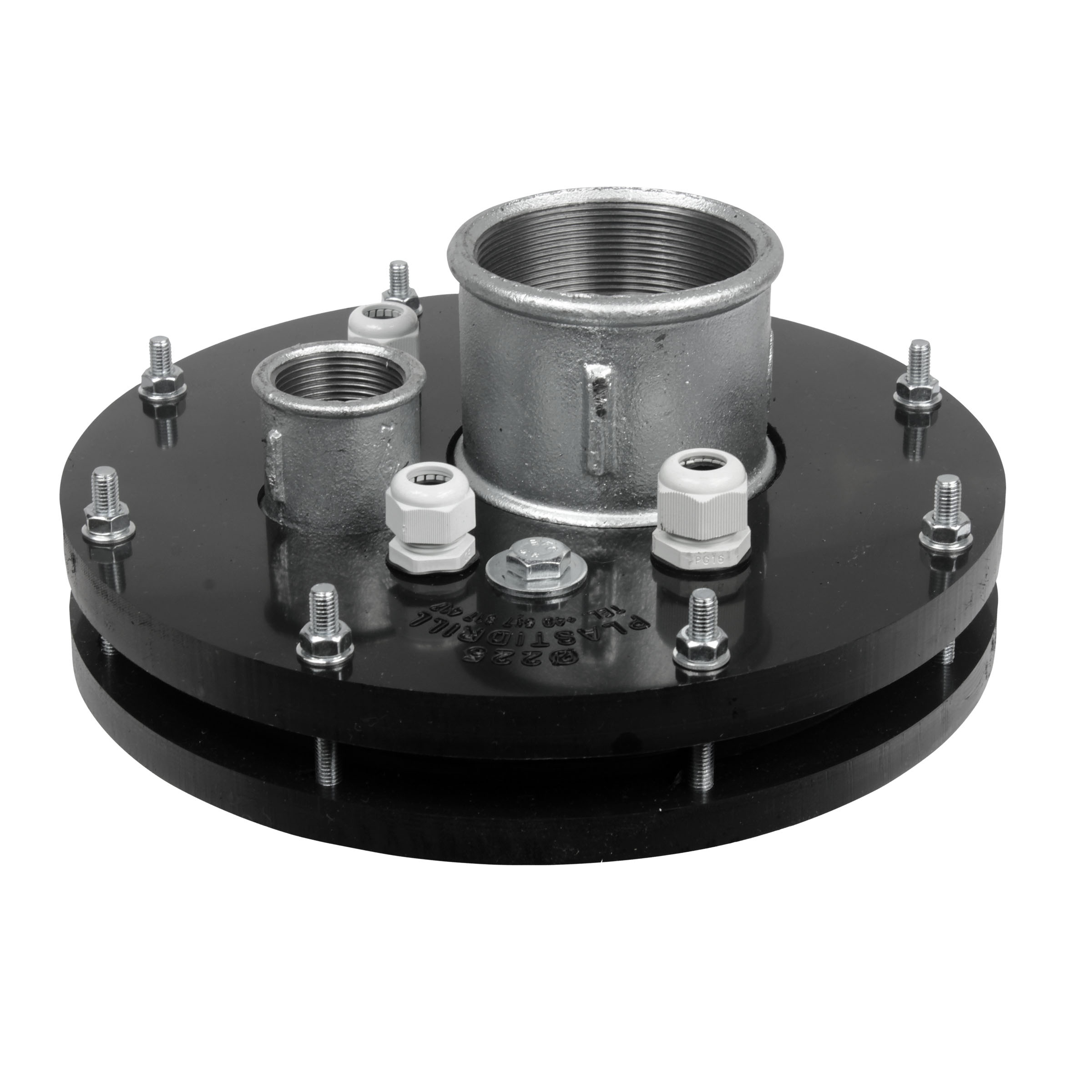 Głowica studni głębinowej o wymiarach 225mm x 3" + 5/4"). W głowicy występuje dodatkowy dławik.