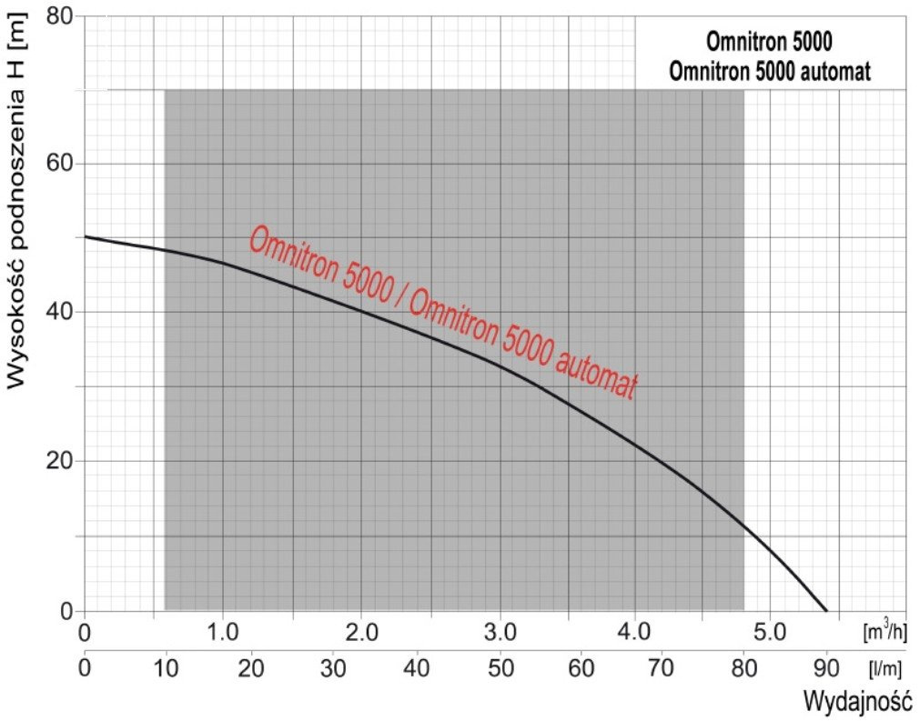 Wysokość podnoszenia max. [m]:![]() Wysokość podnoszenia H max. - najwyższa możliwa wysokość tłoczenia cieczy, przy najmniejszej możliwej wydajności Q min. Znając wysokość podnoszenia możemy w łatwy sposób określić maksymalne ciśnienie pompy. Wysokość podnoszenia 10m, to odpowiednik ok 1BAR ciśnienia. Gdy więc np. pompa ma max. 70m podnoszenia to w teorii powinna dać na wyjściu ok 7BAR. | 50 |