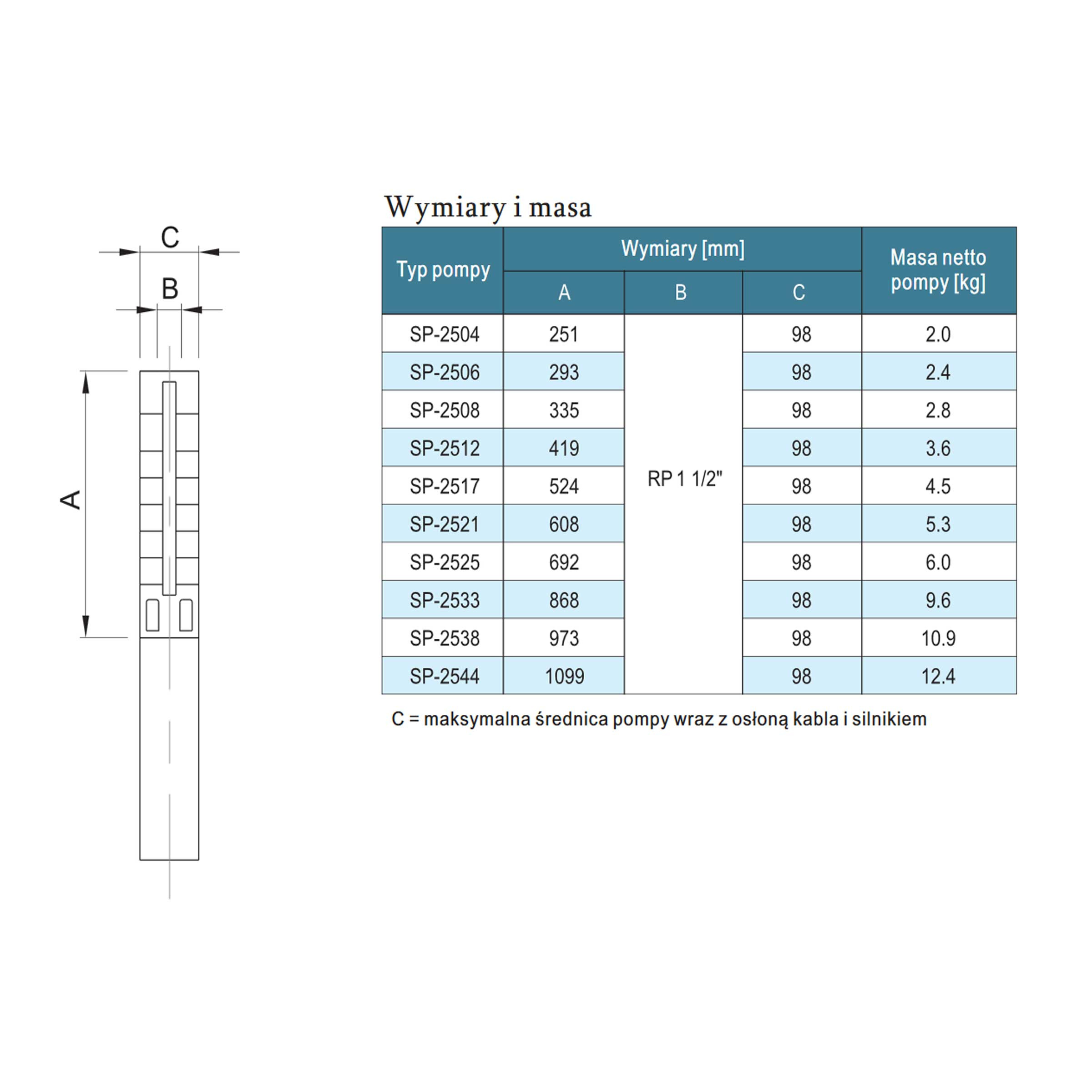 Pompy głębinowe typu SP są nowoczesnymi agregatami w całości wykonanymi ze stali nierdzewnej. Każda pompa zaopatrzona jest w wewnętrzny zawór zwrotny i złącze w standardzie NEMA.