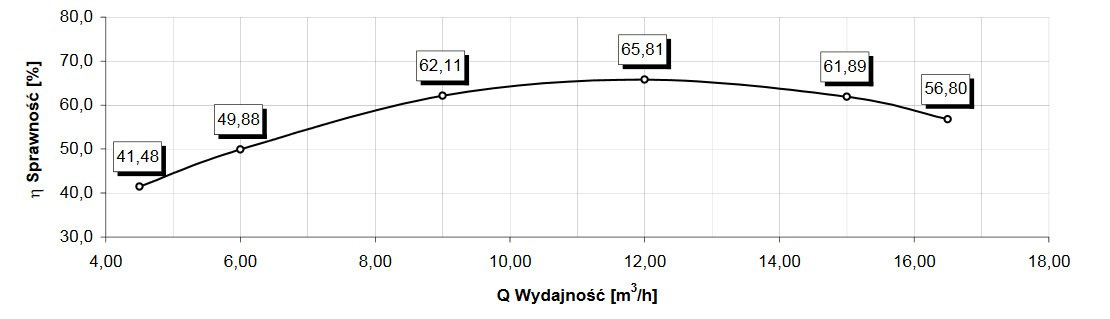 Wysokość podnoszenia max. [m]:![]() Wysokość podnoszenia H max. - najwyższa możliwa wysokość tłoczenia cieczy, przy najmniejszej możliwej wydajności Q min. Znając wysokość podnoszenia możemy w łatwy sposób określić maksymalne ciśnienie pompy. Wysokość podnoszenia 10m, to odpowiednik ok 1BAR ciśnienia. Gdy więc np. pompa ma max. 70m podnoszenia to w teorii powinna dać na wyjściu ok 7BAR. | 6,5 |
