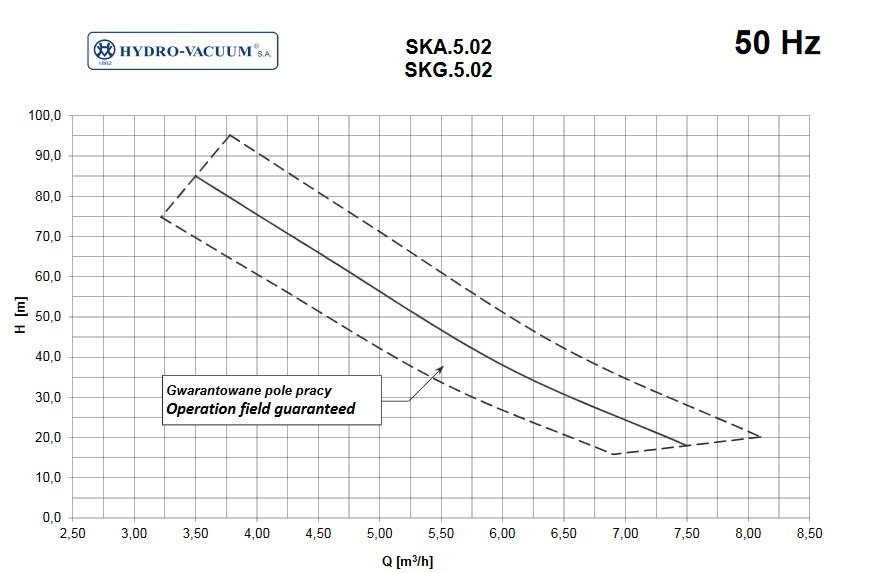 Samozasysająca pompa SKA.5.02.1.1010 producenta Hydro-Vacuum należy do typoszeregu pomp wirowych, krążeniowych, z bocznym kanałem pierścieniowym i wirnikiem otwartym, służących do pompowania cieczy w zakresie odporności korozyjnej materiałów użytych do ich budowy. Dozwolone jest pompowanie cieczy o temperaturze do 110 oC, gęstości cieczy przetłaczanej do 1300 kg/m3, lepkości do 150 mm2/s zanieczyszczonych cząstkami stałymi nieścieralnymi o wielkości do 0,5 mm w ilościach śladowych. Pompy mogą pracować z silnikami o częstotliwości 50 - 60 Hz.
