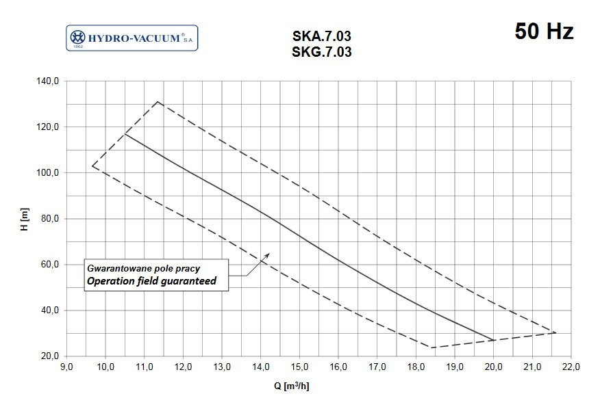 Samozasysająca pompa SKA.7.03.1.1010 producenta Hydro-Vacuum należy do typoszeregu pomp wirowych, krążeniowych, z bocznym kanałem pierścieniowym i wirnikiem otwartym, służących do pompowania cieczy w zakresie odporności korozyjnej materiałów użytych do ich budowy. Dozwolone jest pompowanie cieczy o temperaturze do 110 oC, gęstości cieczy przetłaczanej do 1300 kg/m3, lepkości do 150 mm2/s zanieczyszczonych cząstkami stałymi nieścieralnymi o wielkości do 0,5 mm w ilościach śladowych. Pompy mogą pracować z silnikami o częstotliwości 50 - 60 Hz.