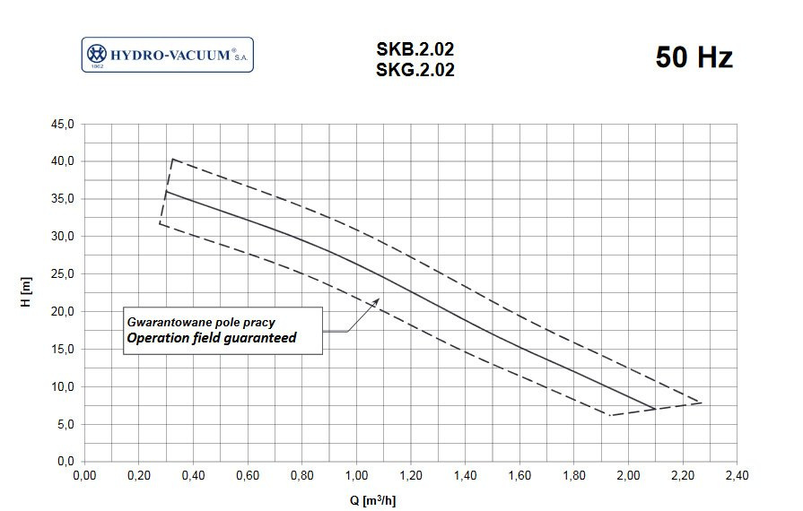 Wydajność maksymalna Q max. - najwyższy możliwy przepływ cieczy przez pompę, przy najmniejszej możliwej wysokości podnoszenia H min.
