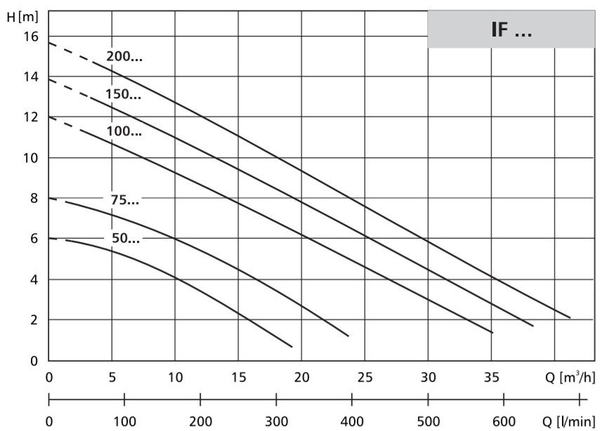 Pompy zatapialne serii IF przeznaczone są do tłoczenia ścieków komunalnych o wielkości ciał stałych określonych przez wolny przelot pompy, ciał włóknistych, gnojówki i fekalii. Przeznaczona do użytku głównie domowego, nie wykluczając profesjonalnego.