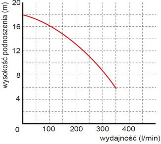 Wydajność maksymalna Q max. - najwyższy możliwy przepływ cieczy przez pompę, przy najmniejszej możliwej wysokości podnoszenia H min.