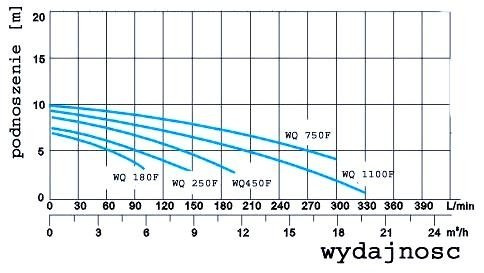 Pompa WQ 750F przeznaczona jest do pompowania ścieków lub wypompowywania wody brudnej z zalanych pomieszczeń: domy jedno i wielorodzinne, rolnictwo, ogrodnictwo działki rekreacyjne, przedsiębiorstwa komunalne, firmy budowlane, ścieki i zalane powierzchnie. Woda czysta, brudna, zanieczyszczona z elementami stałymi.