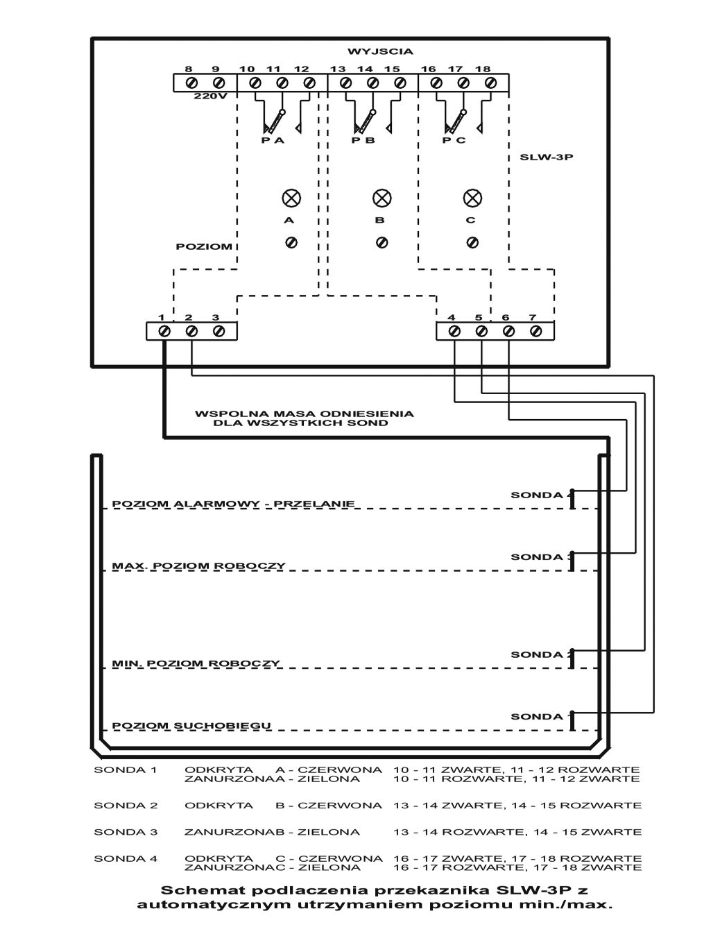 Sondy poziomu cieczy przeznaczone są do przekaźników poziomu cieczy SLW oraz do zestawu USPH. Wykonane ze stali nierdzewnej kwasoodpornej. Maksymalna długość przewodu połączeniowego 100m, przy większych długościach zalecany jest przewód ekranowany (np. koncentryczny).