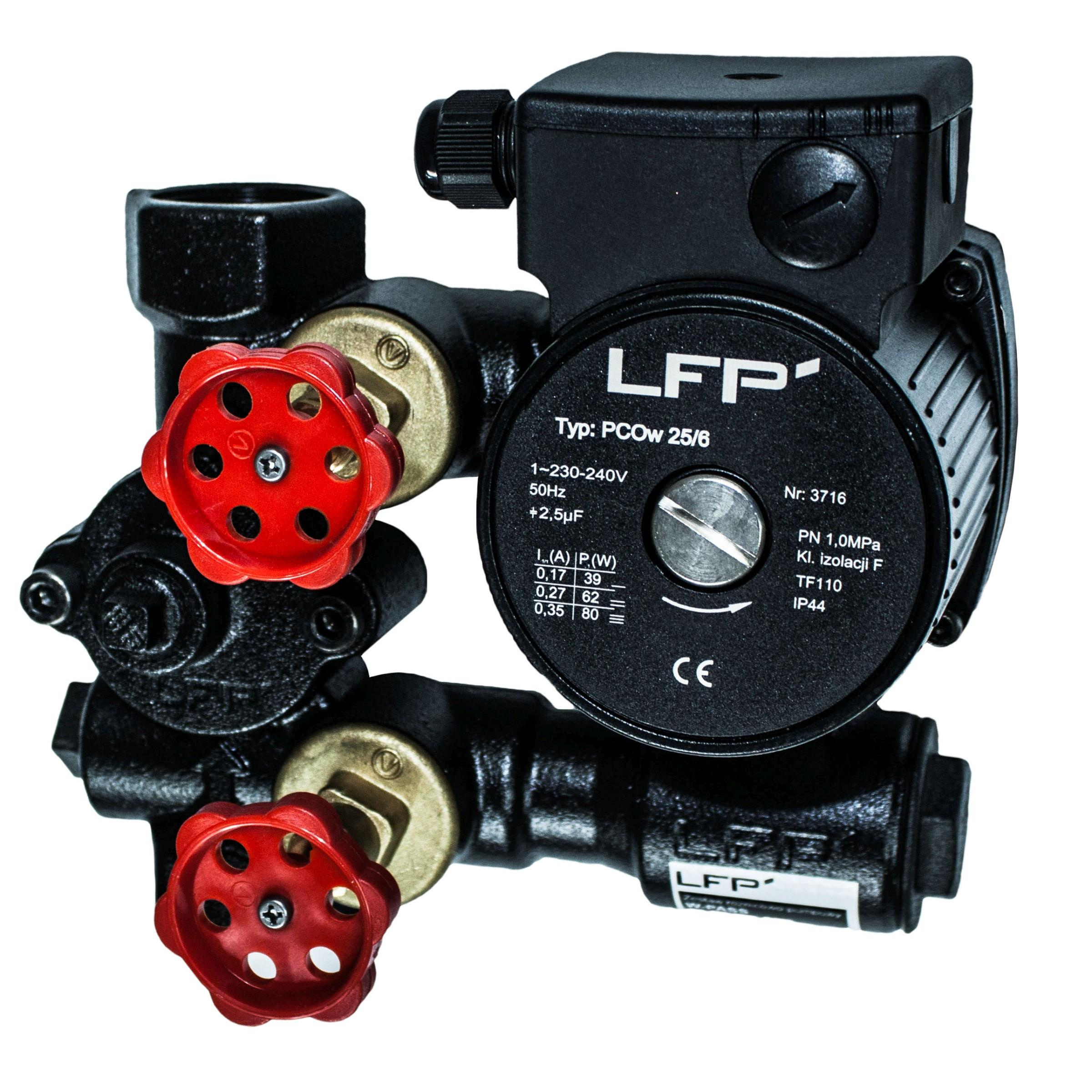 Zestaw oparty jest konstrukcyjnie o pompę obiegową do c.o. i c.w.u PCOw 25/6 LFP przeznaczoną do centralnego ogrzewania oraz tłoczenia wody pitnej w układach c.u.w. Trzybiegowa pompa PCOw sprawdza się świetnie w domowych, małych i średnich układach centralnego ogrzewania gdzie temperatura wody waha się pomiędzy 5 - 110 st. C.