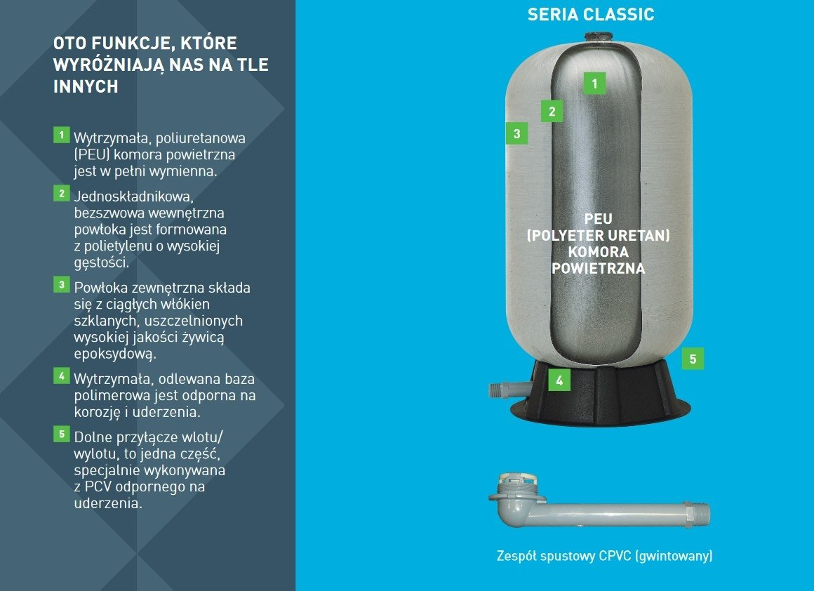 Amerykańskiej produkcji, zbiornik przeponowy o bardzo lekkiej i niezwykle wytrzymałej konstrukcji.